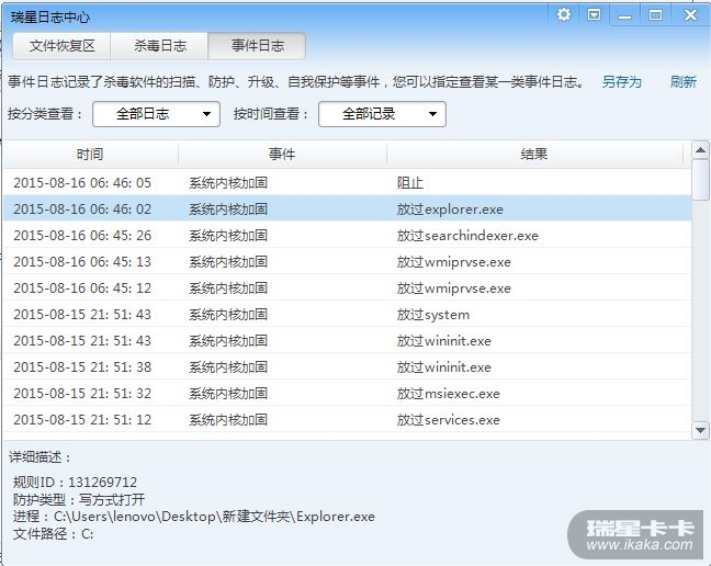 运行病毒后,瑞星 居然提示“ 已经自动放行可疑对象”,