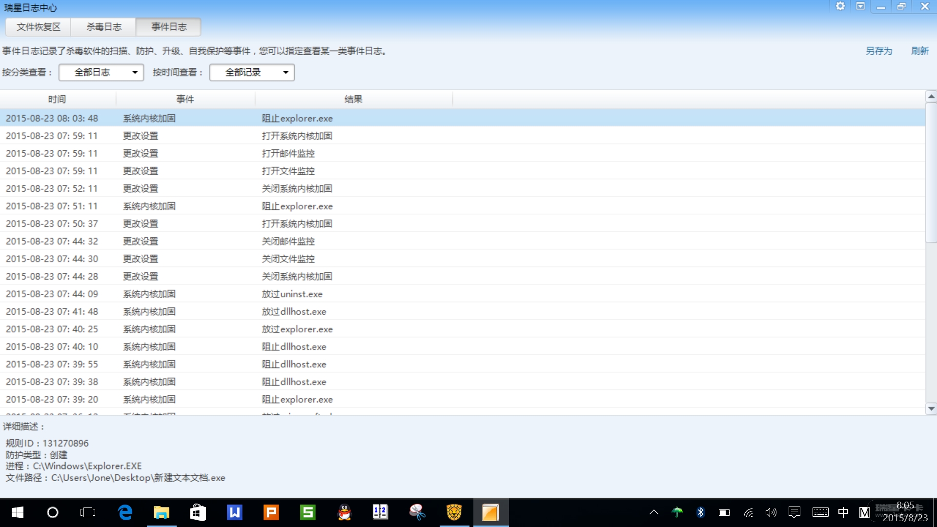 强烈建议日志能够详细的记录触犯的“规则名称”,触犯规则对象程序,已经操作的详细路径。。。