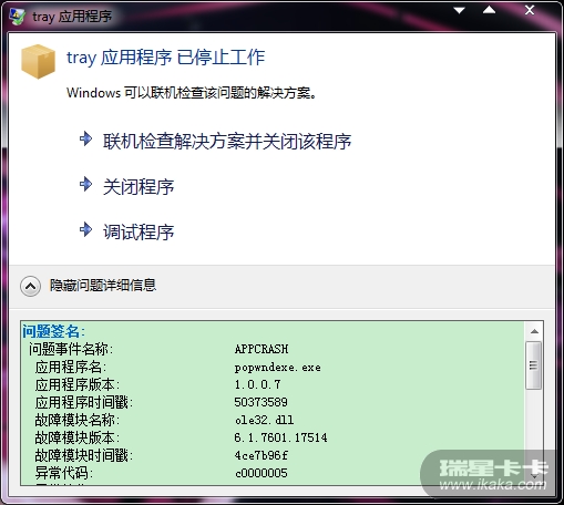 请查看下瑞星安装目录下是否有dump文件,如果有,请压缩跟帖发来;如果没有,请将您的QQ