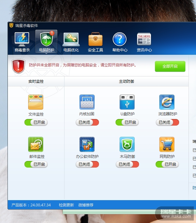 全部开启也没有用。重新安装瑞星也没有用。该怎样解决?