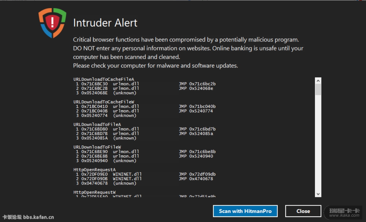 诺顿22.5.4是绕过警报的内存监控等功能。由于这种旁路,警报再也不能归因于WININET和URLMON API钩子诺顿。因此,对于入侵者警报的原因。