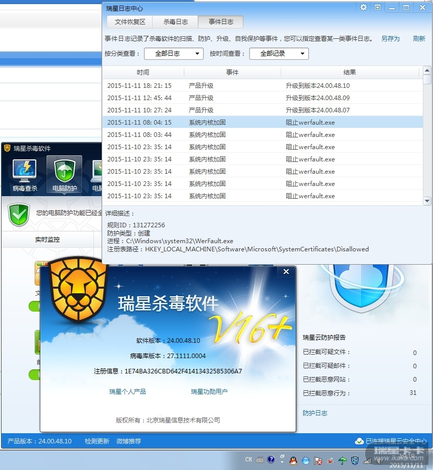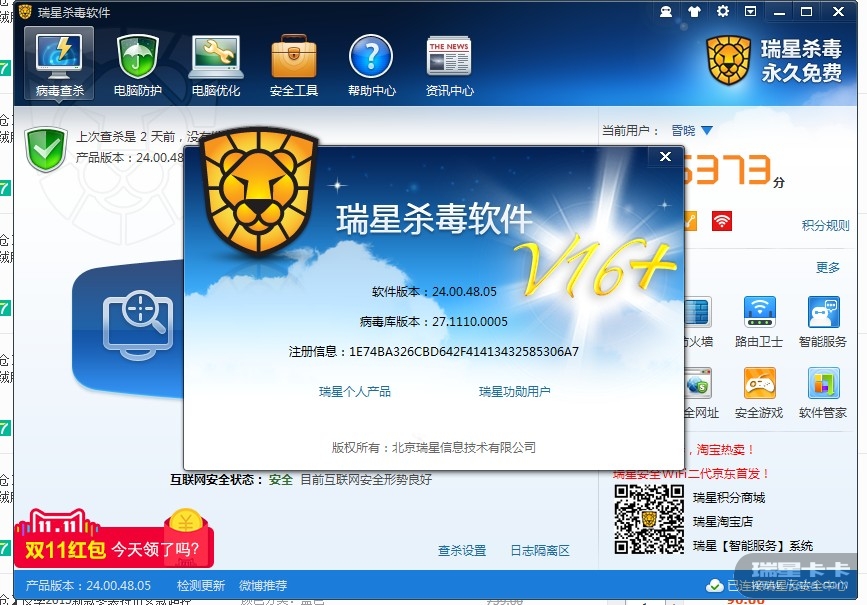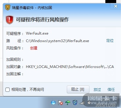 准备“双十一”打开网站抢东东。结果发现瑞星杀毒误报。(如图所示)