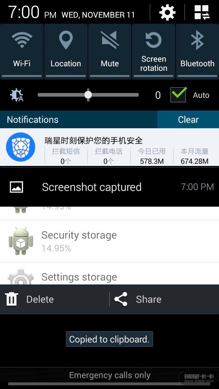 Android 4.4.4 瑞星5.21.03 三星I9300i