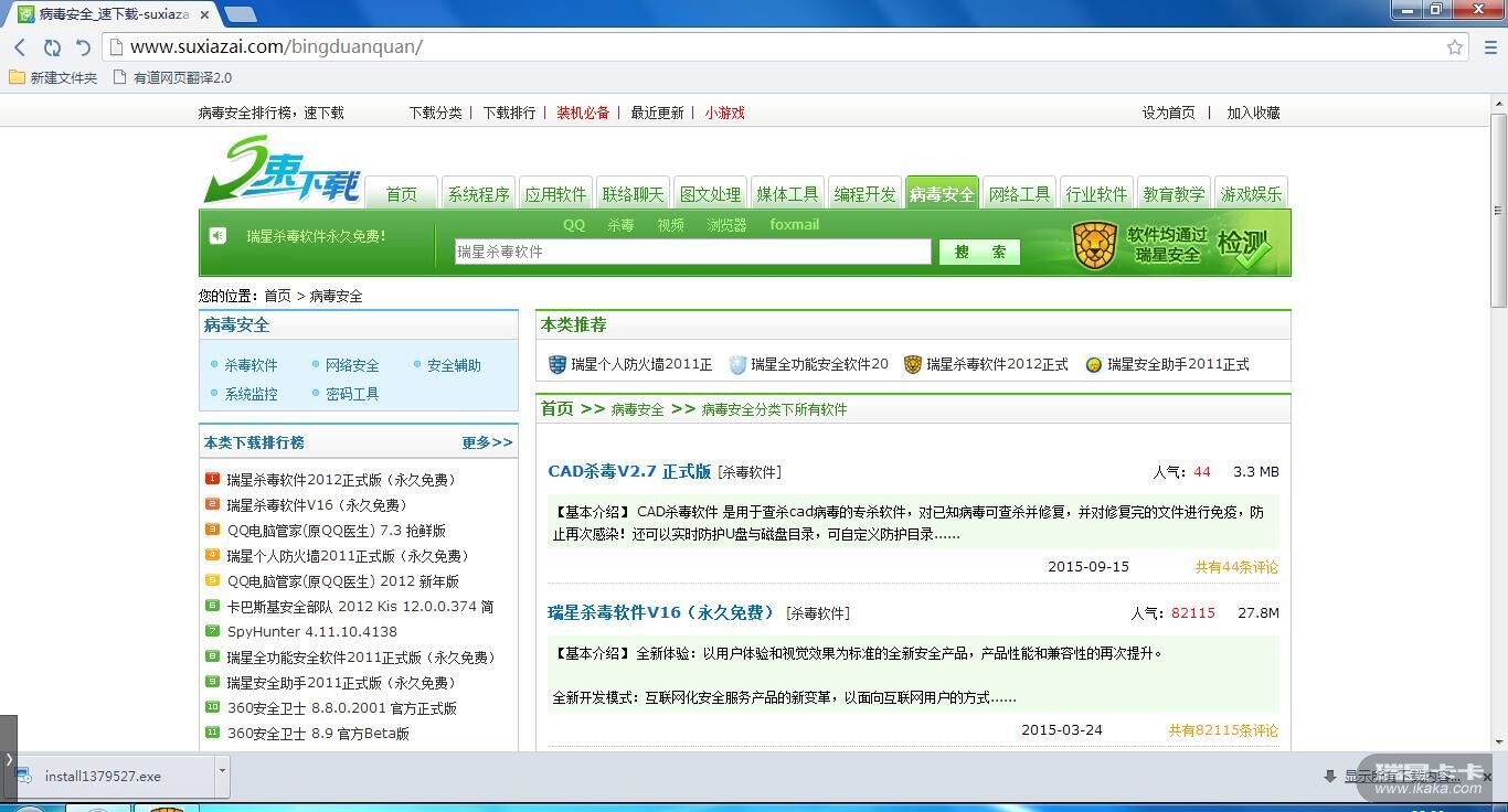 而且该网站好像对瑞星很友善