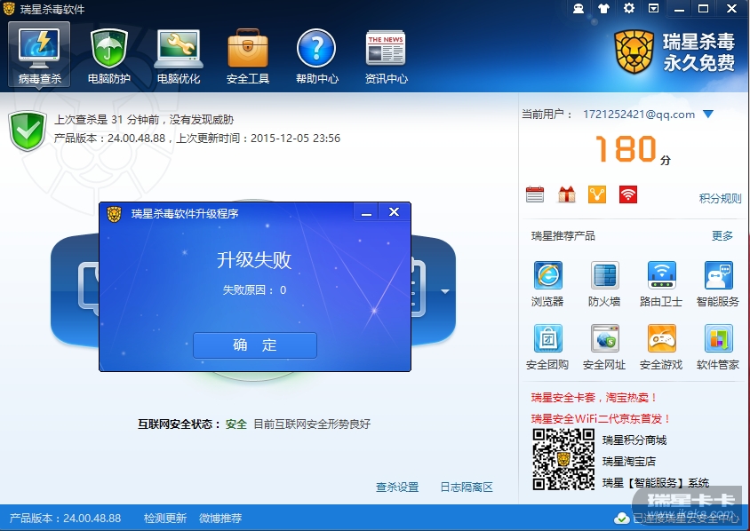 我的系统是win10专业版装了瑞星后有极个别的软件不能安装,不兼容,而且病毒库也不能升级,不过杀毒软件可以升级,希望工程师们可以帮我解决一下,谢谢!!!