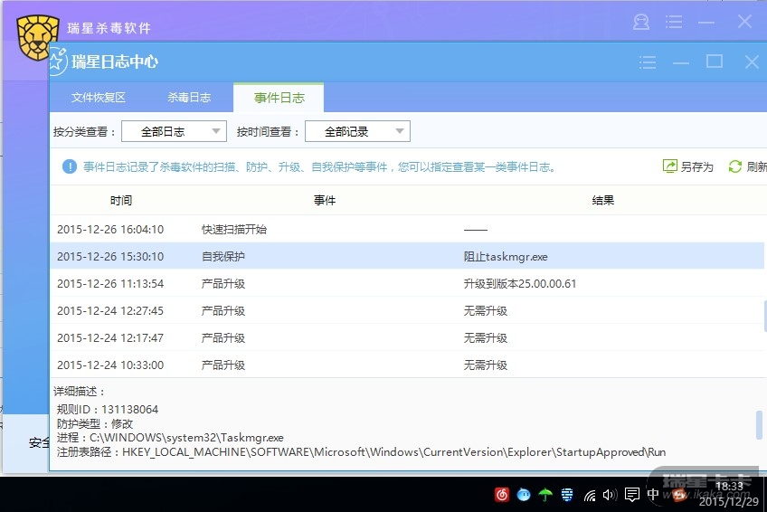 楼主做了什么操作后瑞星自我保护提示的?应该是触发了瑞星的自我保护机制才提示的。