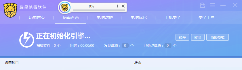 1、“在某些时候查杀的时候发现查杀引擎加载不起”具体有什么现象,请详细描述一下;