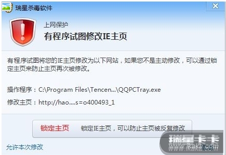 瑞星的主页修改拦截,有时总是弹窗,希望添加重启前不再提示功能,如腾讯管家试图修改 主页,瑞星就弹个不停!!!