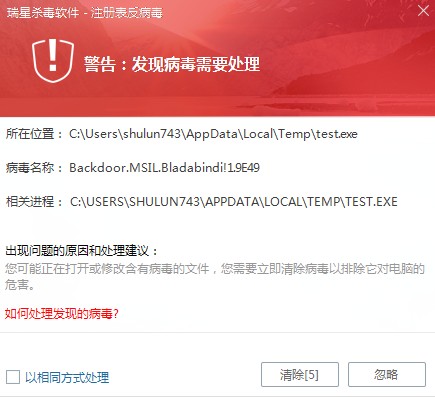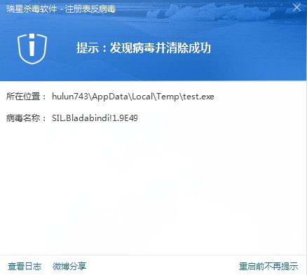 c、这次 有动作了, 实际上上述 “一” , 瑞星有动作了 ,只不过一直 进入 疯狂模式 , 不停的弹窗 ,打招呼 ,也不理