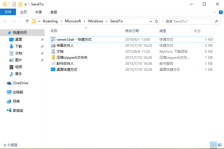 3、右键拖动扫描器所在目录下的ramecl.bat文件到刚刚打开的sendto文件夹中,