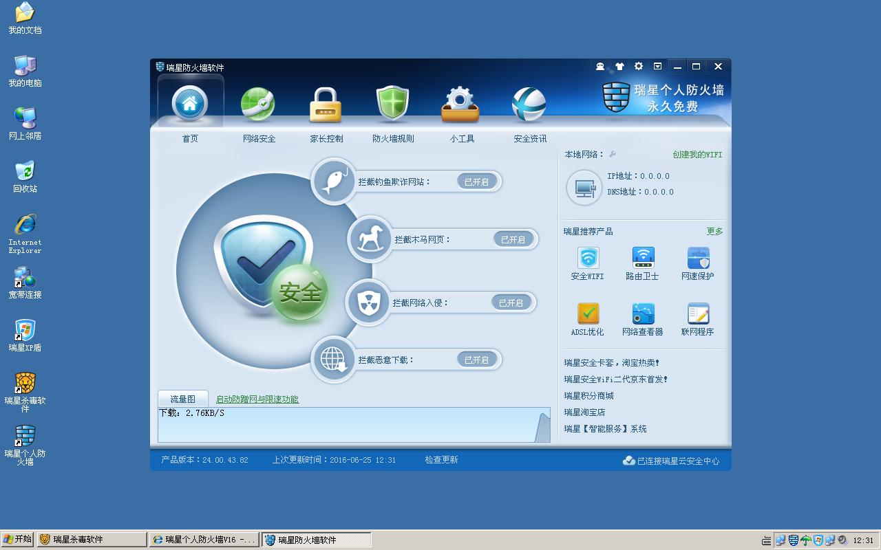 首页 » 个人产品讨论区 » 瑞星个人防火墙V16 » 防火墙主界面,IP显示为0