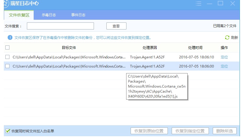 目测误报。不过报的是Cortana的临死缓存文件,没太大关系,不影响使用。