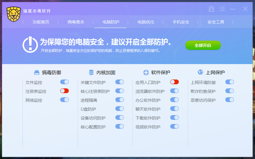 1、提示安全,小伞黄色,右击,全方位监控没有开启