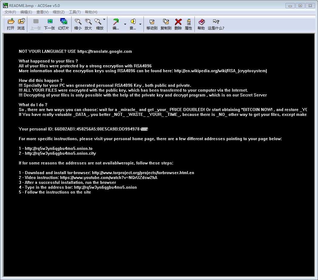 加密勒索病毒,应该是无解的。早期版本曾经放出过密码,国外也做了个解密的程序。