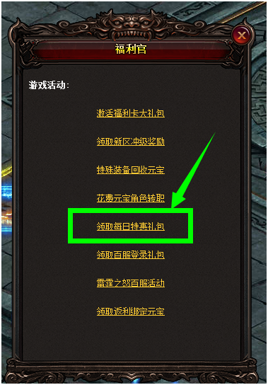 现在起,玩家可在“雷霆之城”的“福利官”处领取“每日特惠礼包”。
