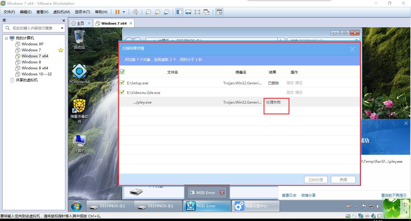 2、瑞星文件监控在处理病毒进程时 ,存在问题 , 很多时候 , 无法操作 病毒的 函数 , 也就是无法触发 病毒 报错------- 函数错误