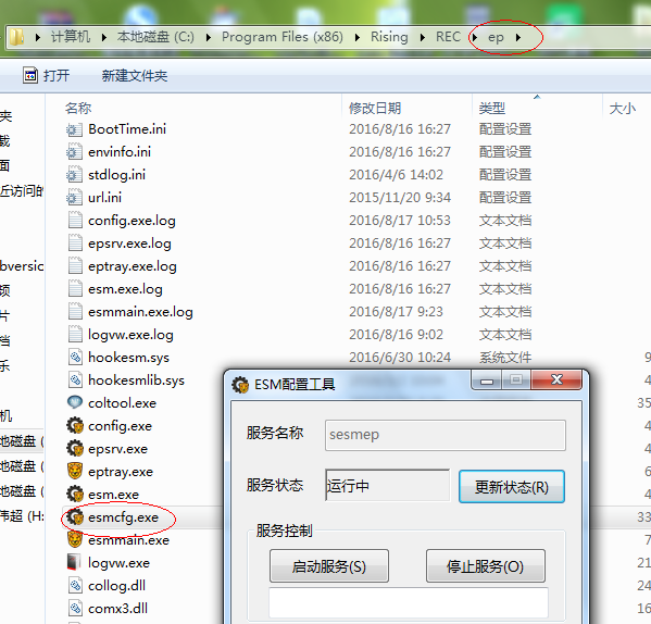 运行esmcfg.exe 停止服务: