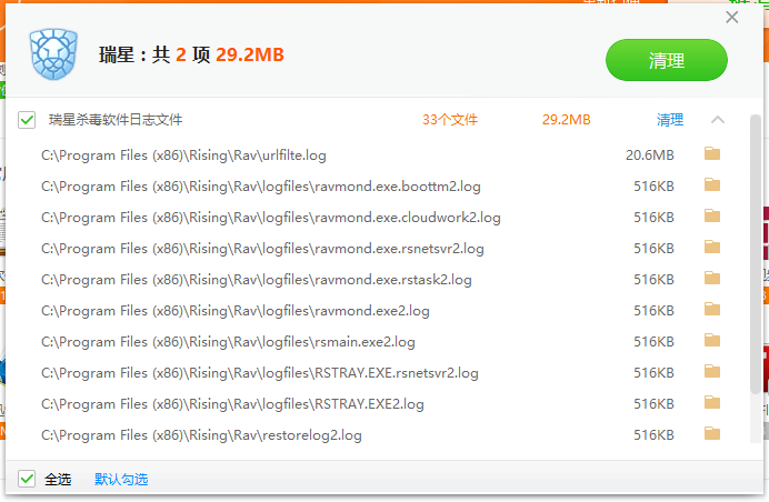 1、瑞星文件, 又被当成 垃圾清理掉了 , 当然 log 也算, 但是 瑞星就那个自保 一点也没有脾气