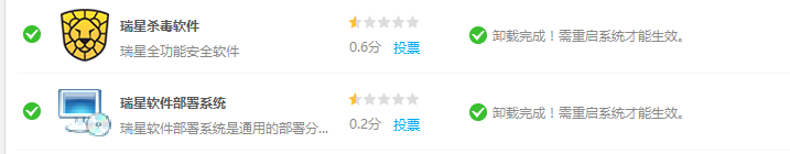 2、软件管家哈是 用 延迟清除的 模式 ,删除瑞星 软件啊