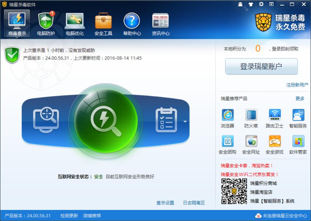 问题来了。无法连接瑞星云安全中心,也无法修复、无法卸载、无法升级、、下载安装包也不能覆盖安装。目前想升级到v17,能解决?系统64位win10,瑞星杀毒软件版本24.00.56.31
