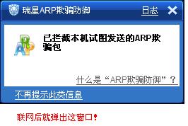 重装过系统,在局域网里,装的刚下的瑞星全功能安全软件,联网后,任务栏右下角瑞星雨伞图标就闪xxx,弹出消息窗口: