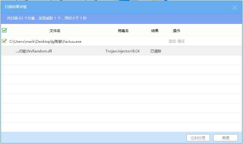 结果: 多次都是提示 清除,但是 还是能发现报毒