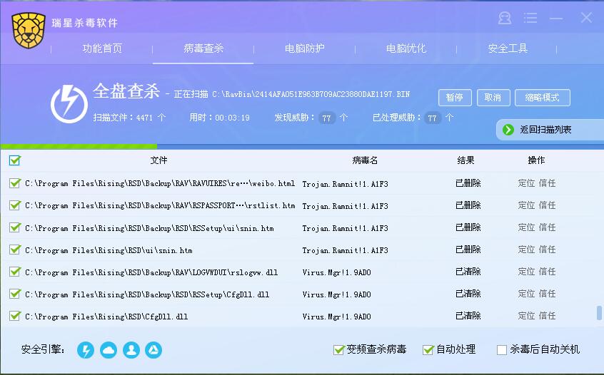 1、瑞星自身被感染,并且 日志程序不正常!!!