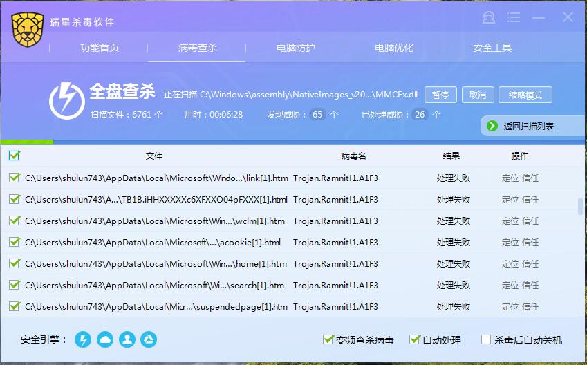 清楚不掉, 多次扫描都是无法清理掉病毒!!!