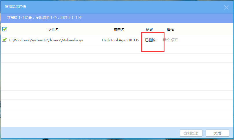 瑞星提示 是 删除了 ,但是 再次扫描还存在的!!!