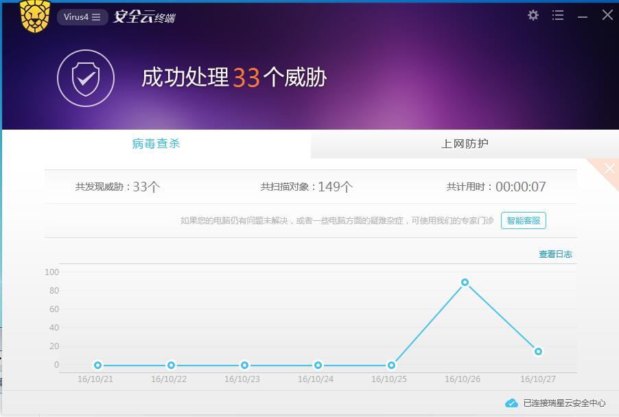 有人可能会说占用并不是评价的唯一标准。我们再来看一下瑞星查杀的表现。