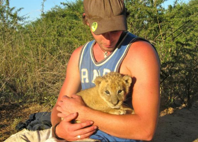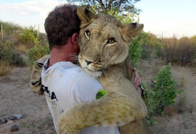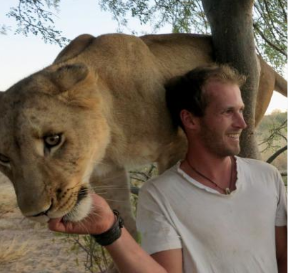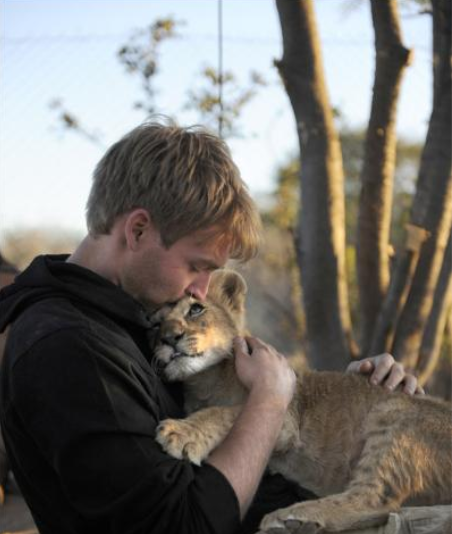 帅气小哥救下被遗弃的小狮子,长大后跟在主人身边寸步不离