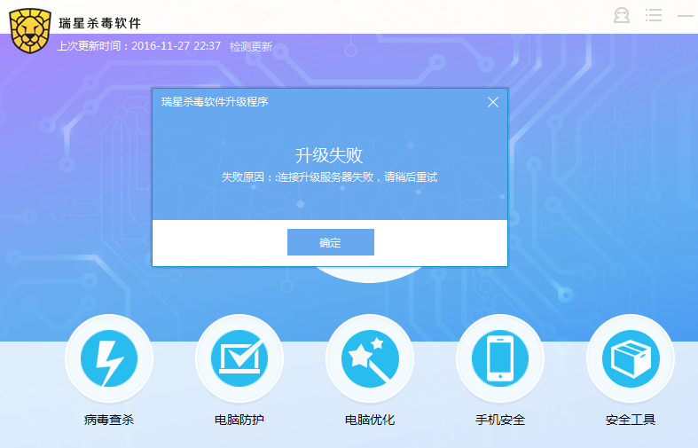明明可以下载病毒库,下载到99%,然后开始更新的时候,提示出错,连接服务器失败了!