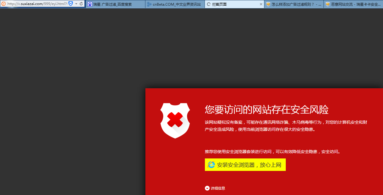 请问,是点击哪个地址的哪个位置时提示的?疑似是防毒墙报的