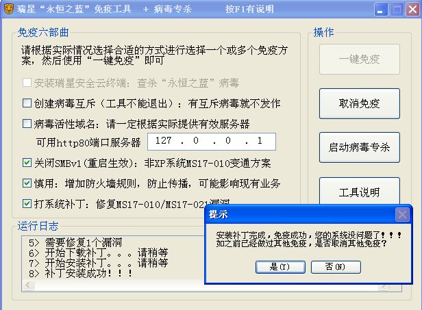 准备工作:下载瑞星“永恒之蓝”免疫工具。