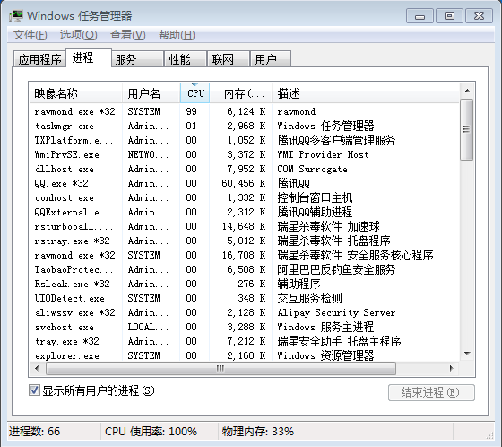 下载附件,解压缩,右键点击procexp.exe,选择以管理员身份运行,找到那个99%的进程,