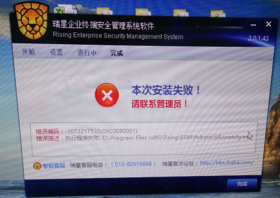 首页 » 企业产品讨论区 » 瑞星ESM防病毒终端安全防护系统 » win10下安装客户端出现问题