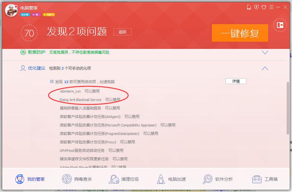 一键加速后,瑞星相关进程 魂飞湮灭!!!
