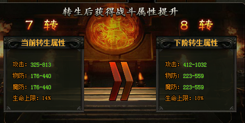 玩家通过转生可以为自己提升各项属性,转生是为了限定玩家穿更高等级的装备。