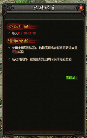 花费金币刷新膜拜等级,膜拜后可获得量经验每天最多膜拜10