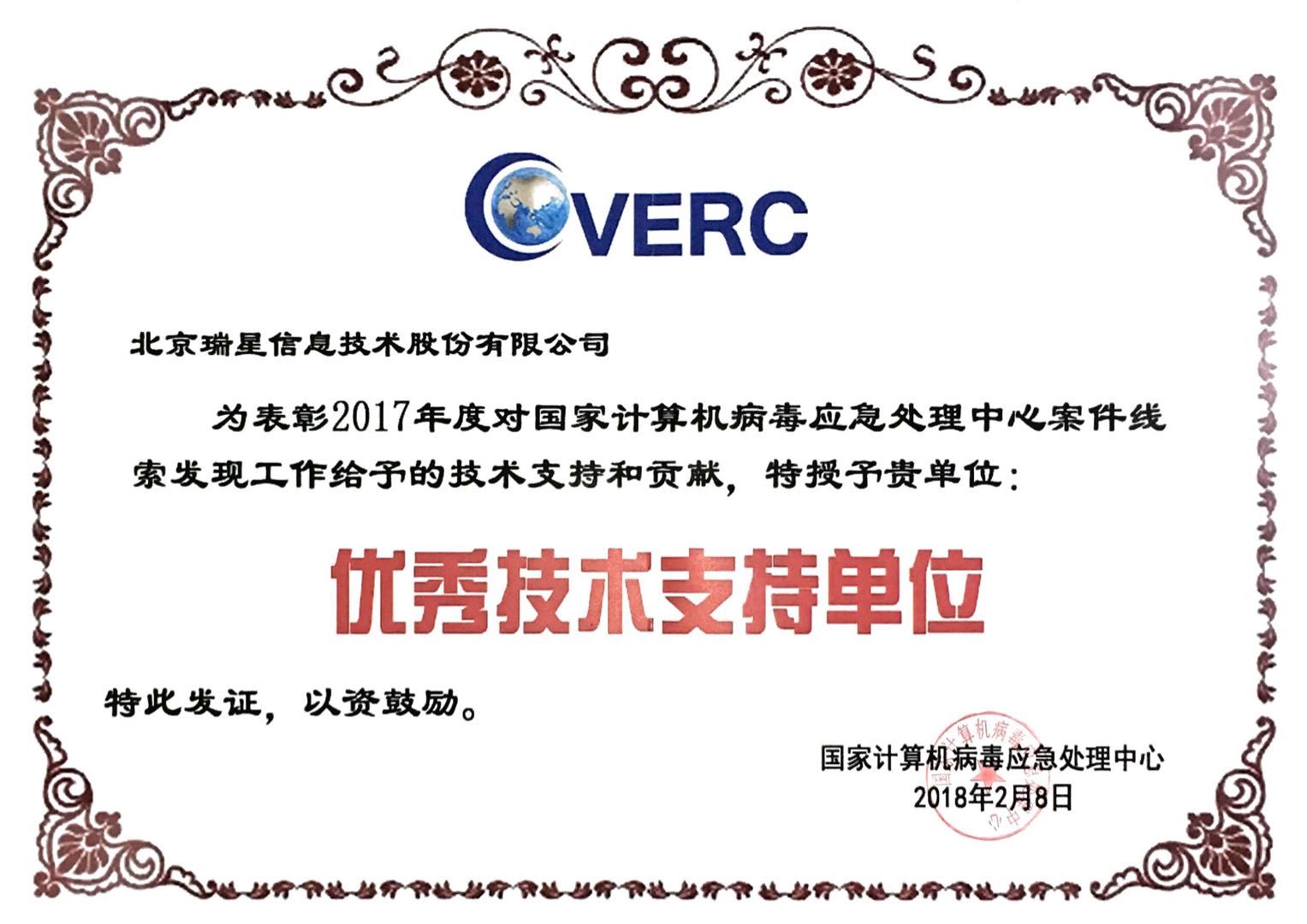 国家计算机病毒应急处理中心2017优秀技术支持单位