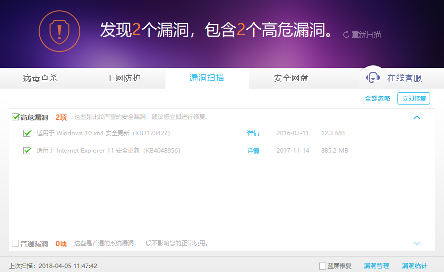 我用的windows10专业版,但瑞星安全云终端漏洞扫描出来却是