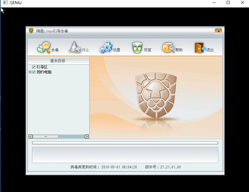 查看完整版本: 瑞星Linux引导杀毒磁盘镜像,病毒库更新到2018年5月1日。