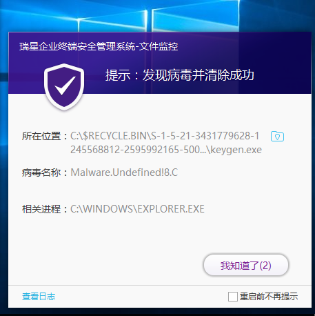 问题描述:1、直接打开压缩包运行EXE文件,成功运行,文件监控并且不报毒。2、把压缩包中EXE文件拖拽到出来或者解压到(桌面上或者任何地方),成功运行EXE,文件监控不报毒。3、把EXE文件删除放到回收站,文件监控直接报毒。