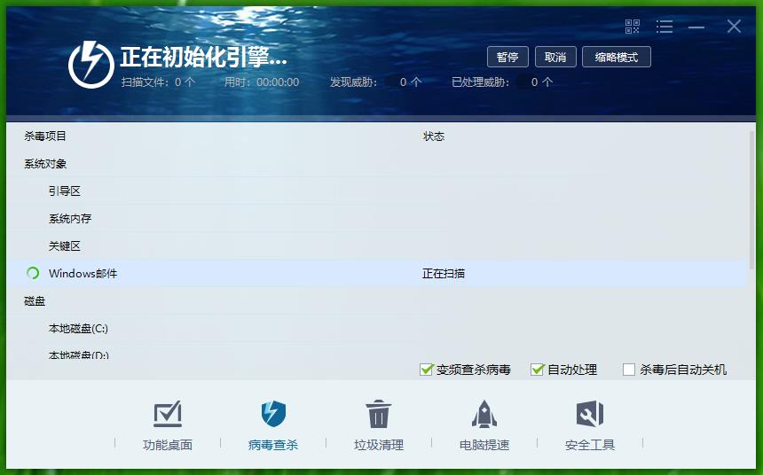 不管使用全盘还是快速或自定义杀毒 都卡正在初始化引擎
