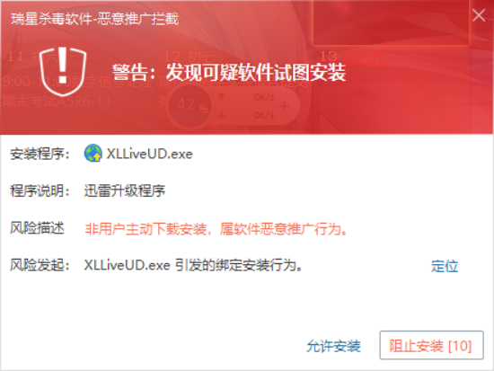 最近更新的迅雷10.1.8.284,瑞星开启了捆绑软件拦截。拦截可以,能不能添加记住选择的选项?每次开机都要出现这个窗口,感觉很烦啊。