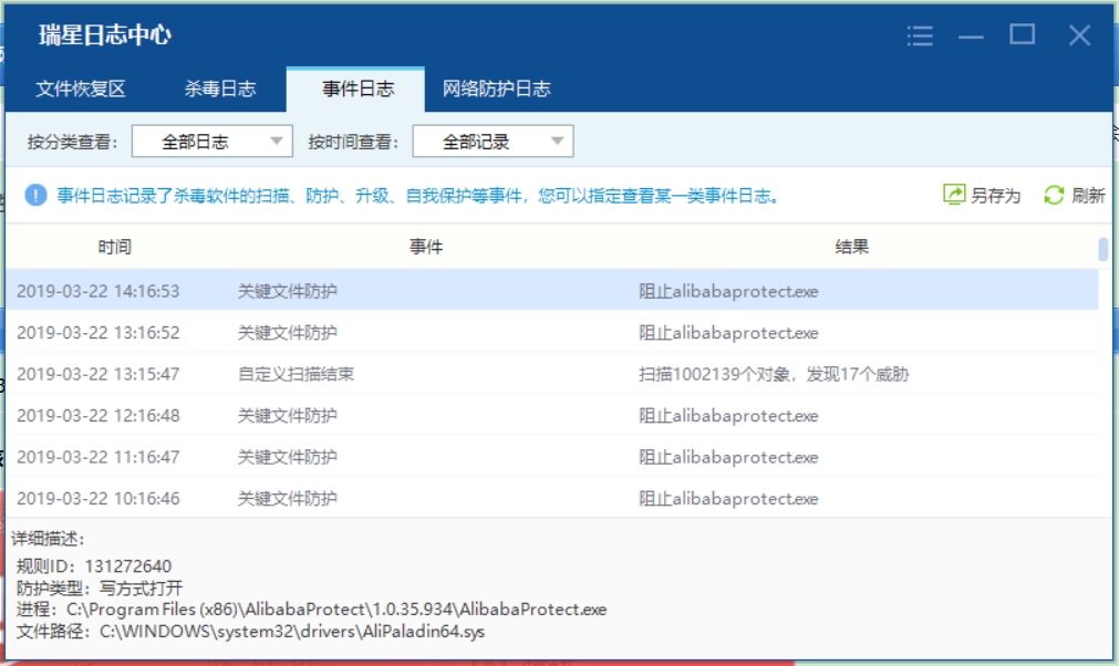 其他防护似乎也是有解除不了这个问题,之前装了个虾米音乐,选择了阻止AlibabaProtect+不再询问,然后刚才偶然看看日志发现没弹窗就直接阻止了。