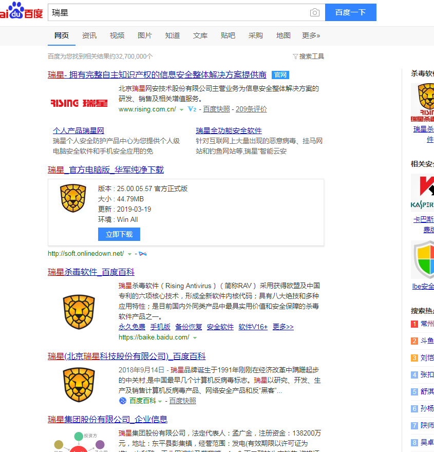 回复楼主,:kaka12: 使用百度搜索的时候,打一些关键字的时候,也出现过广告的现象,不要在意百度里出现的火绒广告,毕竟百度公司也是要吃饭的。天下没有免费的午餐哈!我觉得百度里搜【瑞星】有您想要结果就可以了。其它的不重要了。