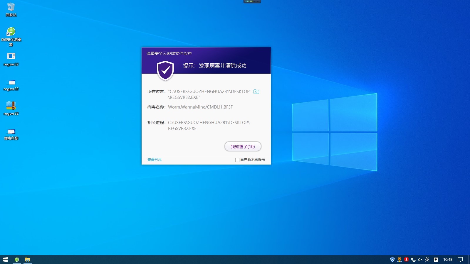 你好同志:请麻烦你看regsvr32是否是蠕虫.病毒名称:Worm.WannaMine/CMDL!1.BF3F