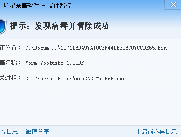 对此病毒,瑞星可实现全面查杀!