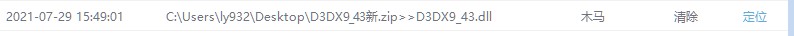 使用右键扫描无法对桌面的D3DX9_43.dll报毒,但是可以对在桌面压缩包里的D3DX9_43.dll报毒